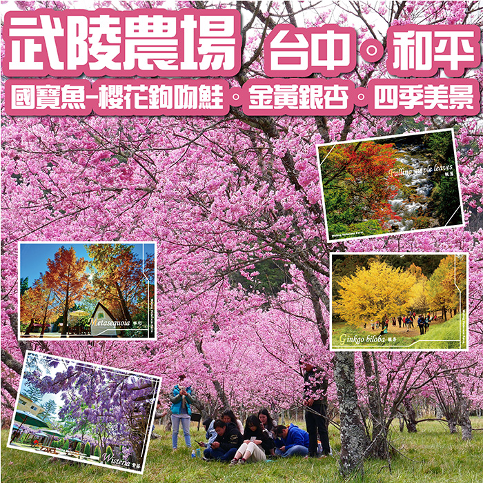 武陵農場位處台灣中北部山區,為雪山山脈所環繞,海拔高度約在1,740~2,200公尺之間,四季繁花似錦,年均溫約15℃,是臺灣著名避暑勝地,四季景緻以春花、夏果、秋楓、冬雪著稱,因天然地景奇特,蘊育了豐厚的自然景觀與人文資源,尤以七家灣文化遺址及國寶魚櫻花鉤吻鮭最為珍稀。武陵農場擁有豐厚的自然資源,有許多特有生物,包括台灣獮猴、山羌、白面鼯鼠…等;鳥相也相當豐富,常年可見愛鳥人士賞鳥、拍攝。近年來因氣候變遷及生態保育趨勢,已轉型為以觀光休閒與生態旅遊為主、農作體驗為輔的經營型態。武陵景緻秀麗迷人,雲霧氤氳,林野挹翠,流水悠碧,親樹賞鳥,聽波觀魚,無不生機盎然,動靜之態,皆引人入勝,相當適合闔家出遊。